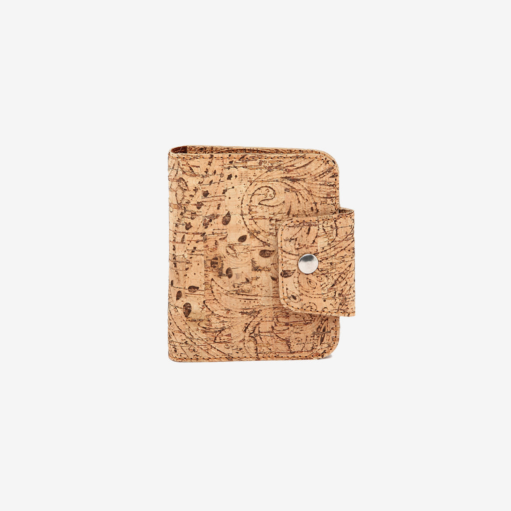 This coin and card holder wallet is made of natural cork. The laser design adds a unique touch to this eco-friendly product. The lightweight and durable material make it perfect for everyday use. Keep your cards and change organized in style with this practical and sustainable wallet.