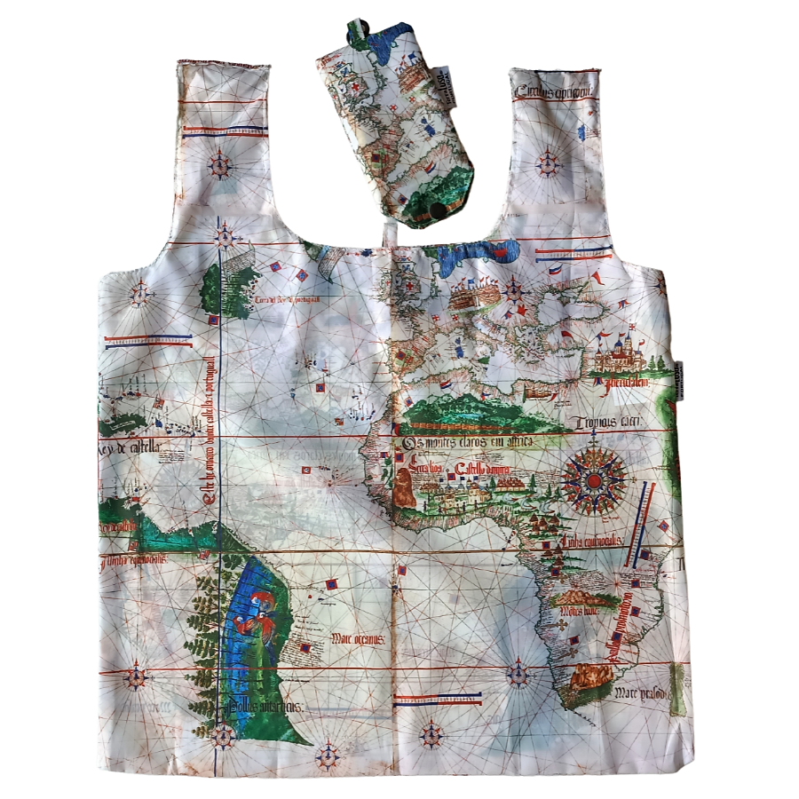 Com um design inteligente e inspirado num famoso planisfério, o eco saco inspirado no planisfério de Cantino é um saco de compras reutilizável e prático. Com um peso de apenas 35 g e uma capacidade até 10 kg, é perfeito para o uso quotidiano. Facilmente transportado numa bolsa compacta, é um must-have para os compradores amigos do ambiente.