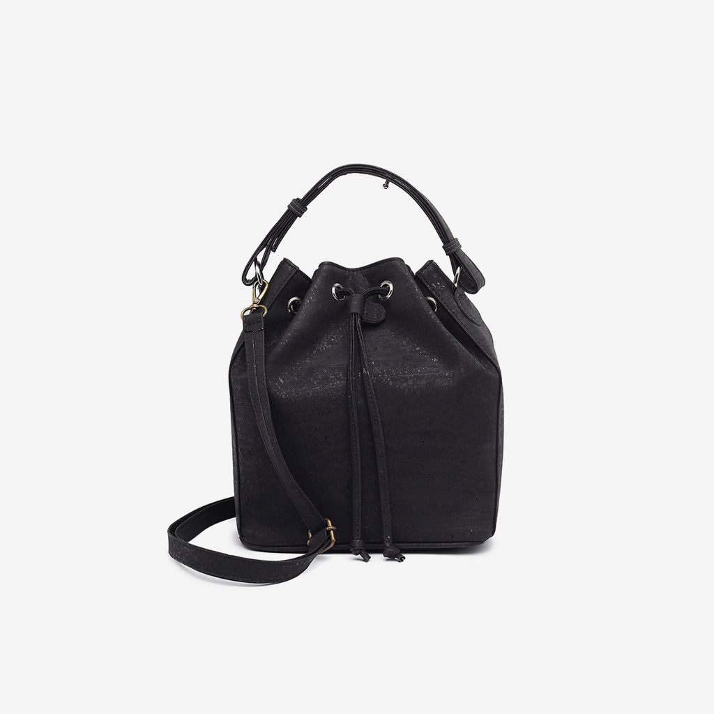 This bag features a durable cork strap and versatile handle, providing convenient carrying options for your daily essentials. The sleek black design adds a touch of style to any outfit. Upgrade your on-the-go organization with this functional and chic bag.