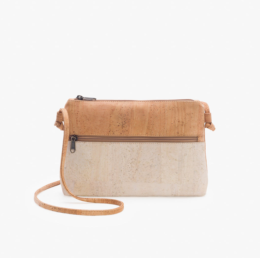This small shoulder bag is made from white and natural cork, giving it a unique and eco-friendly look. The cork material is lightweight and durable, making it the perfect choice for everyday use. Its compact size makes it a convenient option for carrying essentials while still making a stylish statement.