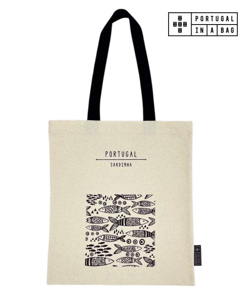 This cotton shopping bag features a historic icon of the Iberian Peninsula, the sardine. Salty and preserved, the sardine has been consumed and traded for centuries. In the 20th century, Portugal reached a prominent position in the export of sardine preserves, a tradition that continues today.